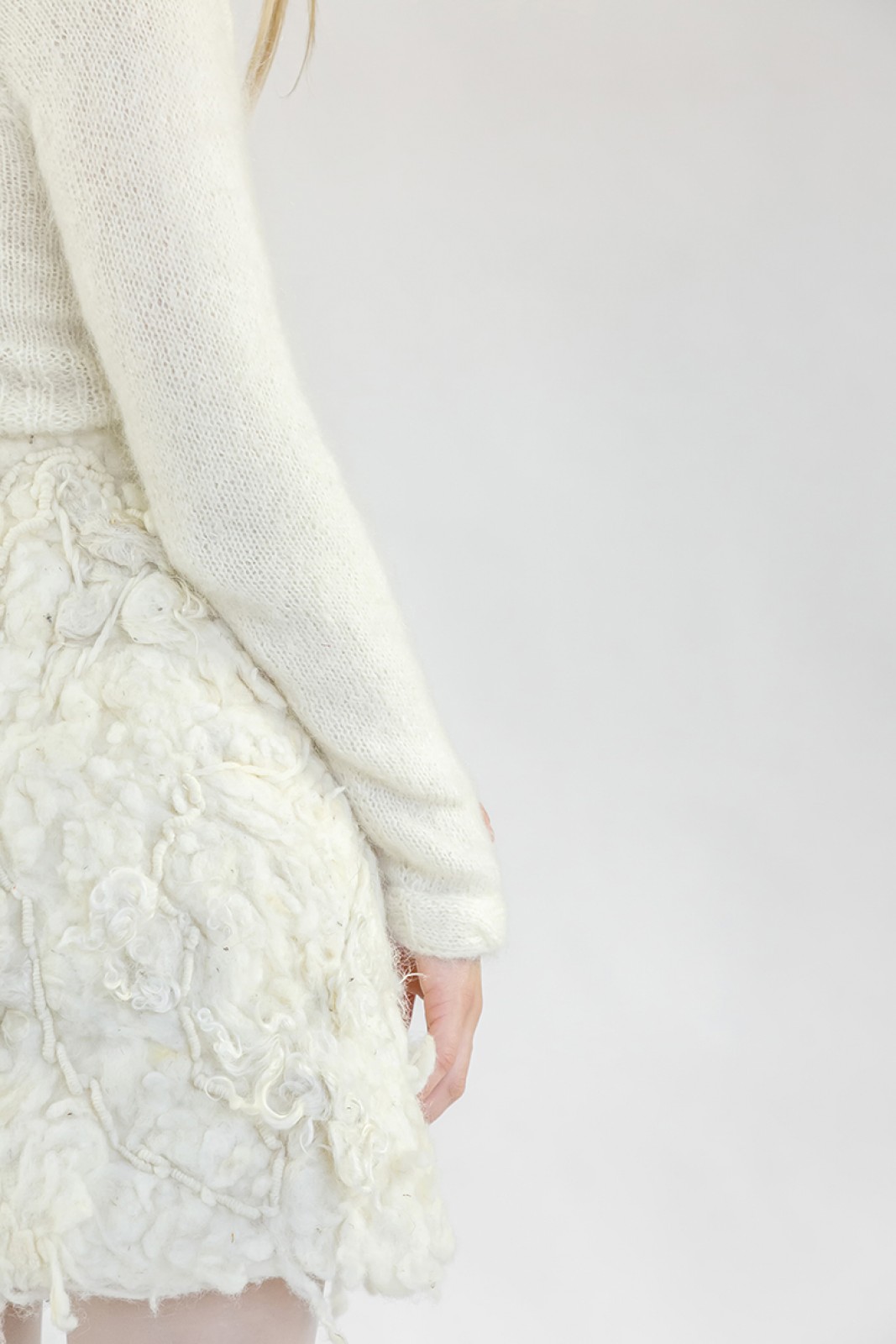 This bold skirt is crafted on a base of regenerative wool, with delicate felted and embroidered details that seamlessly bind the design elements together. Hidden button closures maintain a clean silhouette, making this piece a striking statement item that blends innovative textile art with sustainable craftsmanship. Every item in our collection is handmade by our trusted community of craftsmen, ensuring authentic, artisanal quality in every stitch.