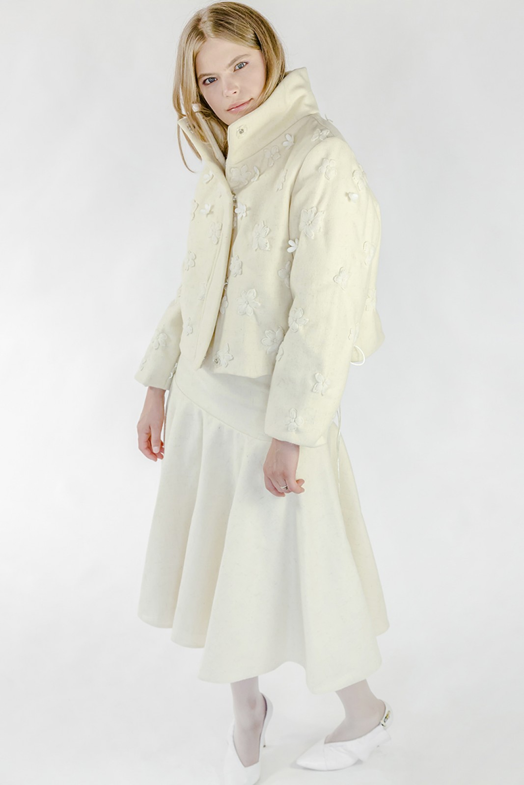 Structured at the waist with a sculpted flare below, this skirt is crafted from regenerative wool and closes with laced loops for a custom fit. The silhouette is modern yet fluid, versatile for dressing up or down. Each item in our collection is handmade by our dedicated community of craftsmen, ensuring authentic, artisanal quality in every stitch.